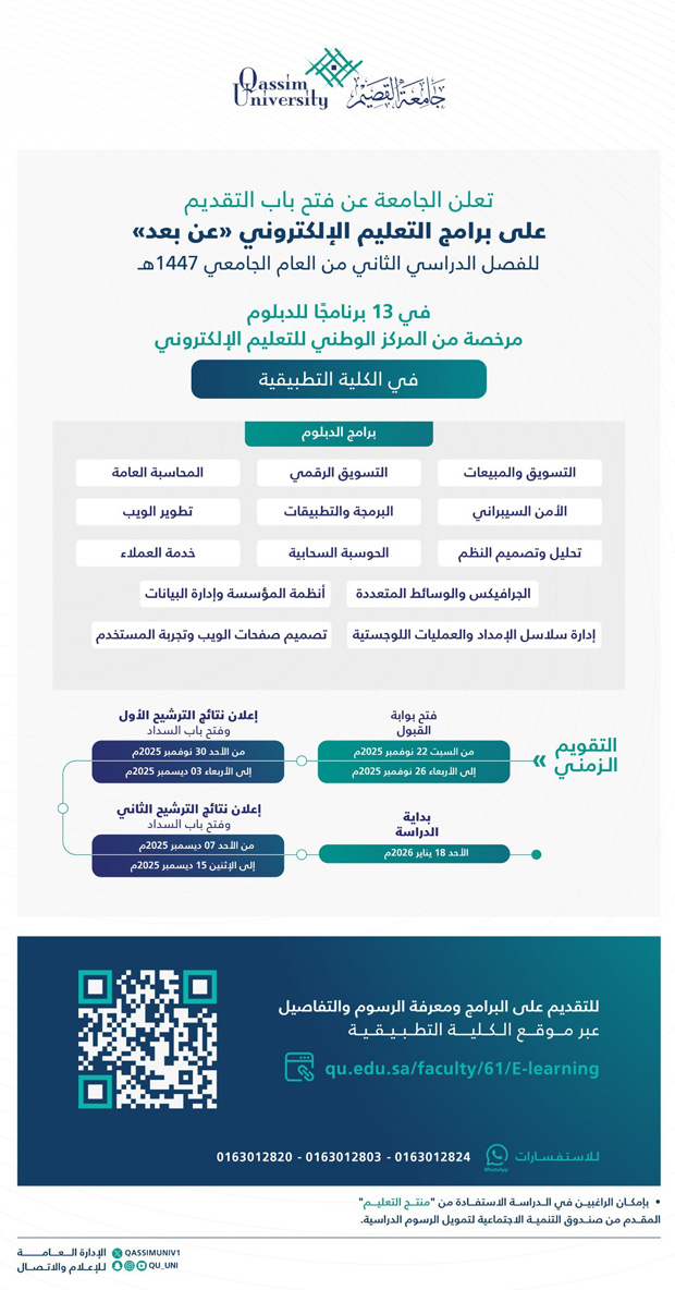 التقديم على برامج التعليم الإلكتروني (عن بعد) للفصل الدراسي الثاني 1447هـ – جامعة القصيم ..